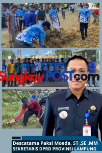 Bandar Lampung – Sekretariat DPRD Provinsi Lampung turut ambil bagian dalam kegiatan korve atau bersih-bersih lingkungan yang dilaksanakan di Komplek PKOR Way Halim sebagai tindak lanjut Instruksi Gubernur Lampung Nomor 8 Tahun 2026 tentang gerakan kebersihan kantor dan lingkungan kerja, Senin (13/4/2026).